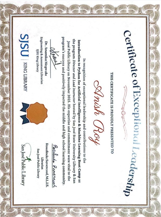 - Served as Program Director and Lead Instructor for the Fall 2025 AI/ML Boot Camp in partnership with San José Public Library, leading end-to-end planning, execution, and delivery.